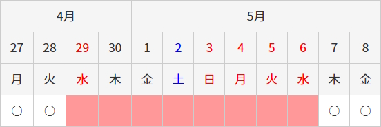 GW休業日:2026年4月29日(水)~2026年5月6日(水)